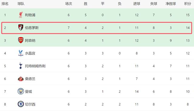 在自己的主场,伯恩茅斯最终上演逆转,拿到了宝贵的3分。这场胜利过后,伯恩茅斯也成为英超争四,最大的变数。截至目前,他们仅仅落后利物浦1分,排名超越了阿森纳等豪门,如今位居第二。自从输给利物浦之后,伯恩茅斯已经6轮不败,他们是目前英超状态最好的球队之一。