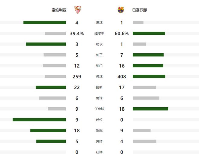 本场比赛巴萨状态低迷,让主场作战的塞维利亚早早取得了2球的领先,尽管半场结束前,拉什福德为球队扳回一城,但是下半场巴萨连续浪费机会,最终爆冷在客场1-4惨败。