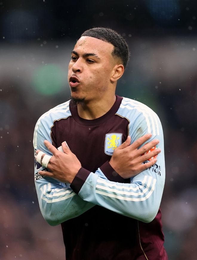 雷速体育10月19日讯 正在进行的英超第八轮,托特纳姆热刺对阵阿斯顿维拉的比赛中,比赛第38分钟,维拉队的摩根·罗杰斯远射破门,帮助阿斯顿维拉1-1扳平场上比分。进球后,罗杰斯做出了标志性的COLD庆祝动作。