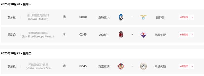 本轮还有3场比赛未赛,分别是亚特兰大vs拉齐奥、AC米兰vs佛罗伦萨以及克雷莫纳vs乌迪内斯。这三场比赛将产生多少粒进球呢?